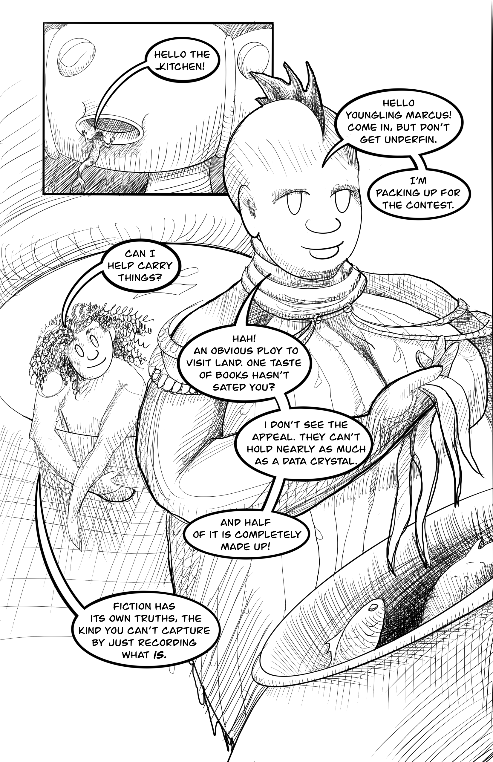 The first six issues are complete, and are waiting for me to color the first pages, and upload and schedule for posting on the site. January 2026 brings us to the end of the second issue. So, while I’m currently drafting issue 7, don’t worry. There’s a ways to go before you’ll run out.
